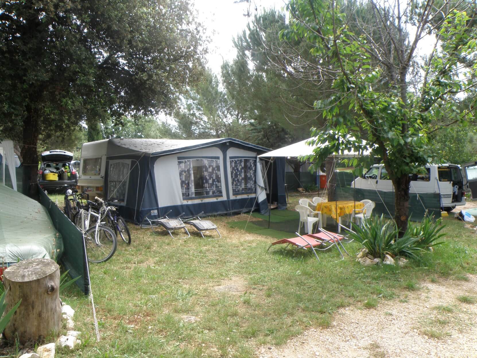 A felszereltséghez tartozik néhány kerékpár, televízió és dvd lejátszó és grill sütő. Takarók és párnák 5 fő részére vannak, de huzatot valamint lepedőt mindenkinek vinni kell. A lakókocsik előtt felállított sörsátor alatt kerti bútor garnitúra és napozóágy szolgálja vendégeink kényelmét a hangulatos nyári estéken. A vörösbort mellyel a kezében, a naplementét szeretné nézni a tengerparton, sajnos Mindenkinek önmagának kell beszerezni! :-)